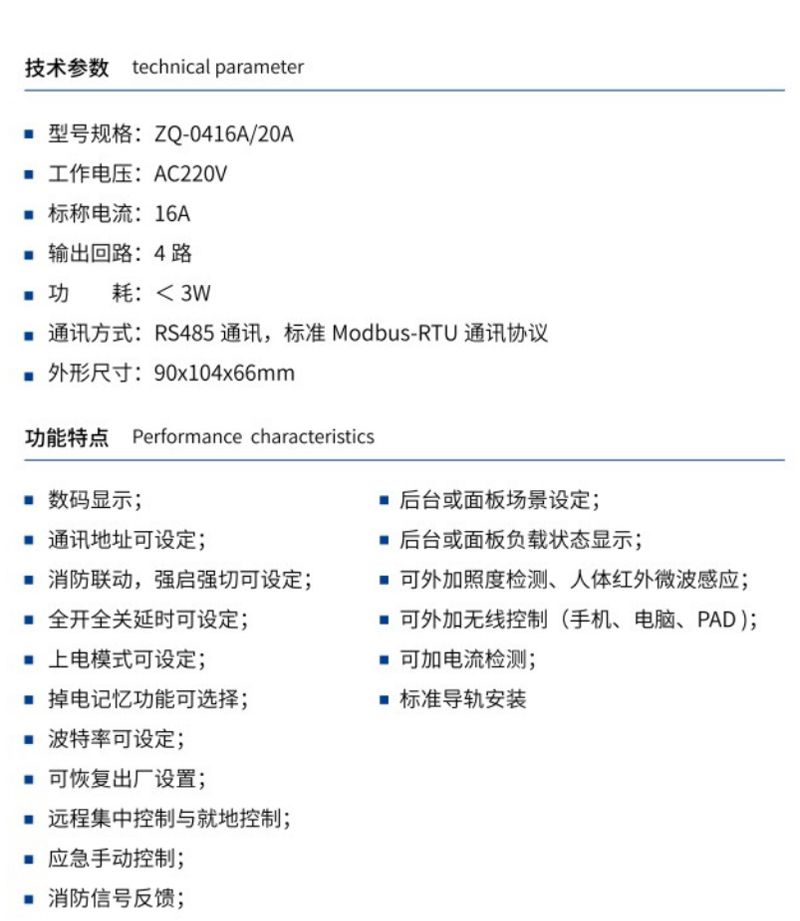 ZQ-0416/20A 4路智能照明控制模塊