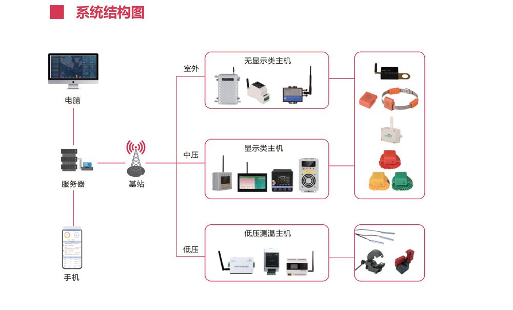 在電力系統中,從發電廠到送變電設備以及到終端用戶電器的整個傳輸過程中都有大量的可變溫度需要檢測、預警。高壓設備連接部位如母線連接點,各種開關、斷路器、主變套管夾、高壓電纜接頭等由于氣候冷熱變化、材料老化、銹蝕、松動等原因易造成接觸不良、接觸電阻增大。在大電流通過時,容易燒壞設備,嚴重的甚至引起一次設備起火爆炸。若對這些溫升故障點的運行狀態進行動態追蹤監測,不僅可以防止、杜絕此類事故的發生,而且亦為電力系統安全可靠分析和科學調度提供重要的決策依據。