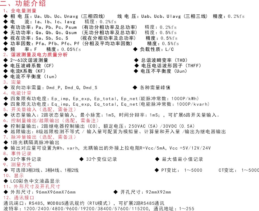 ZQ194Z-9MY電力質量分析儀采用高速高性能的ARM芯片作為處理器設計而成。集合全面的三相電量測量、顯示、四象限有功電度、四象限無功電度、電力質量分析、故障報警、數字量輸入、輸出與網絡通訊于一身。采用大屏幕、高清晰彩色中文液晶顯示,充分滿足您的視覚要求,優雅、明亮的背光顯示使您在微弱光線下亦能輕松查閱測量數據。全中文、人性化的操作方法使得用戶可以在短時間內掌握。