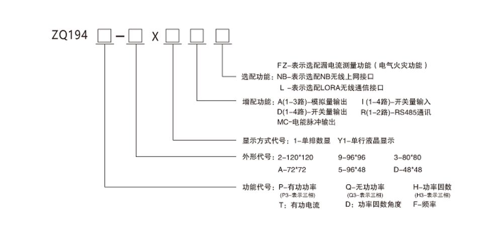 功率、功率因數、頻率表Z Q 1 9 4 P / Q / H / T / D / F系列電力儀表, 數碼管顯示或全視角液晶顯示、分別可測量有功功率、無功功率、功率因素、 有功電能、 功率因數角度、 頻率等多項電力參數。 可選配4 - 2 0 m A 模擬量輸出、繼電器報警輸出、開關量輸入等功能。