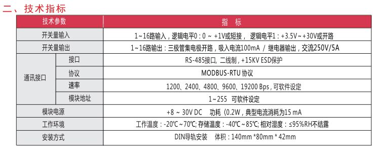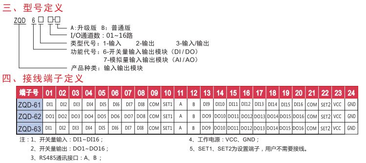 ZQD-6000開關量輸入輸出模塊可廣泛應用于各種工業測控系統中,適用于工業現場的開關觸點狀態檢測、電平監測以及計算機與數字儀器的接口。它能從主計算機' 主控制器、PLC等設備通過RS-485通訊接口接收其數字量輸入,并轉換成開關量輸出信號,可控制繼電器、開關等;并將開關狀態等開關量輸入信號返回到計算機。開關量輸入輸出模塊采用標準MODBUS通訊協議,方便與其他廠家的控制模塊掛在同一485總線上,便于計算機編程。